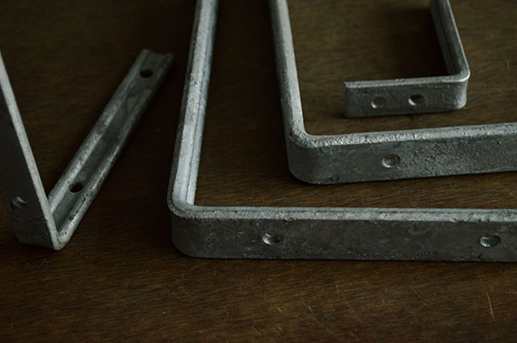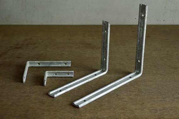 亜鉛メッキ仕上の棚受け。 リブがあることで変形しにくい