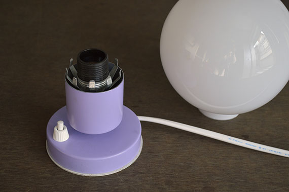 70~80年代、薄紫色のテーブルランプ。昭和の喫茶店やファミレスのカウンターに置いてそうな雰囲気です。