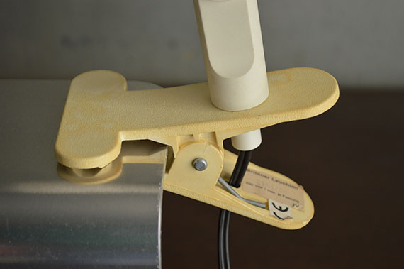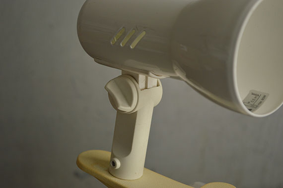 80年代、ドイツBriloner Leuchten社のクリップライト。白のボディにくすんだベージュのクリップの組み合わせ。
