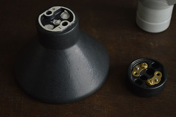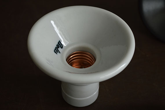 一般的な二段式のモーガルソケットの形状をアレンジしました。フランジを備えたことでグッと照明らしさが