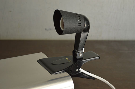 60年代、西ドイツerco社のクリップライト。引き締まった黒のシボ感のあるテクスチャーの本体。